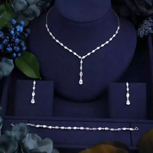 طقم مطلي ذهب ابيض عيار 18 مرصع بالزركون السويسري تسوق اونلاين أطقم مجوهرات بافضل سعر في مصر سوق كوم
