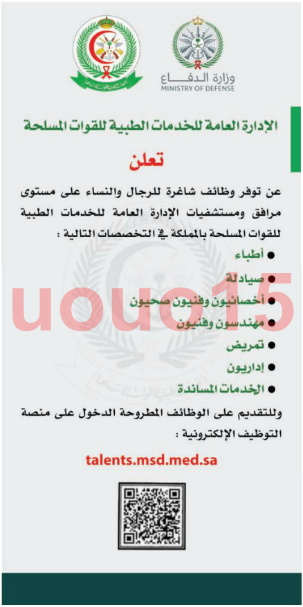 وزارة الدفاع توفر وظائف اداريه بالخدمات الطبية للقوات المسلحة عبر جداره توظيف 1441