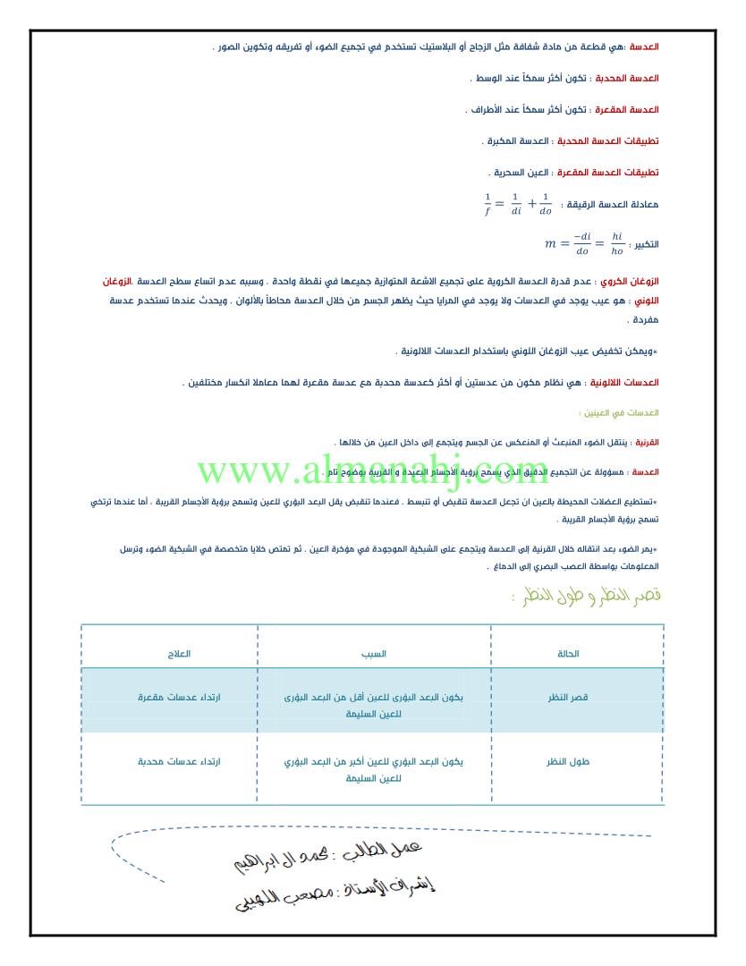 الفيزياء ملخص الإنعكاس والمرايا للصف العاشر عام ملفاتي