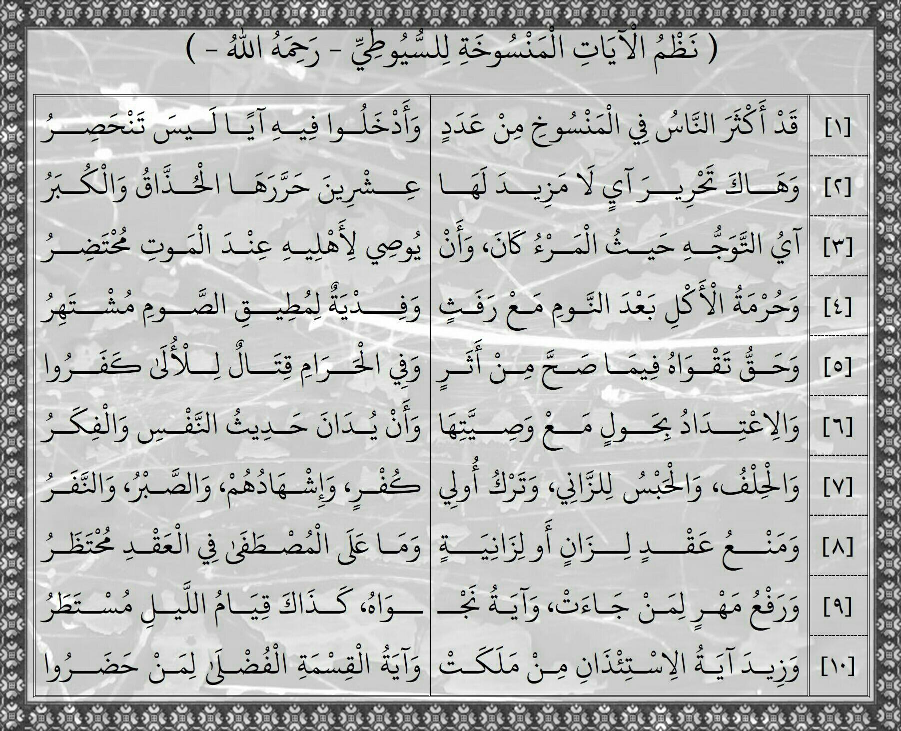 الأبيات العلمية On Twitter أتق ن علما كاملا في عشرة أبيات فقط إليكم نظم الآيات المنسوخة للسيوطي رحمه الله نظم سهل مختصر في علم الناسخ والمنسوخ Http T Co Ykrslpdd