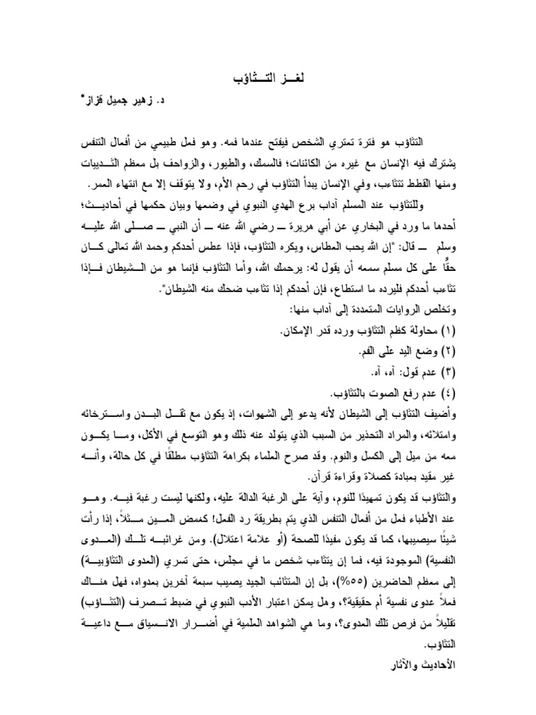 سنن نبوية رد التثاؤب موقع البطاقة الدعوي