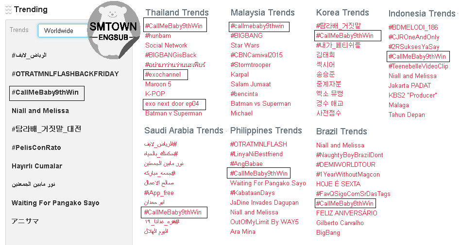 هاشتاق Callmebaby9thwin في الترند العالمي و ترند 7 دول اخرى Exo Arab Fans