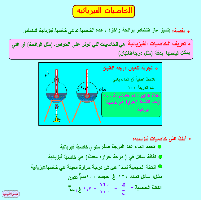 كون جدولا بين الخواص الفيزيائية والكيميائية اعط مثالين على كل نوع منها المتصدر الثقافي