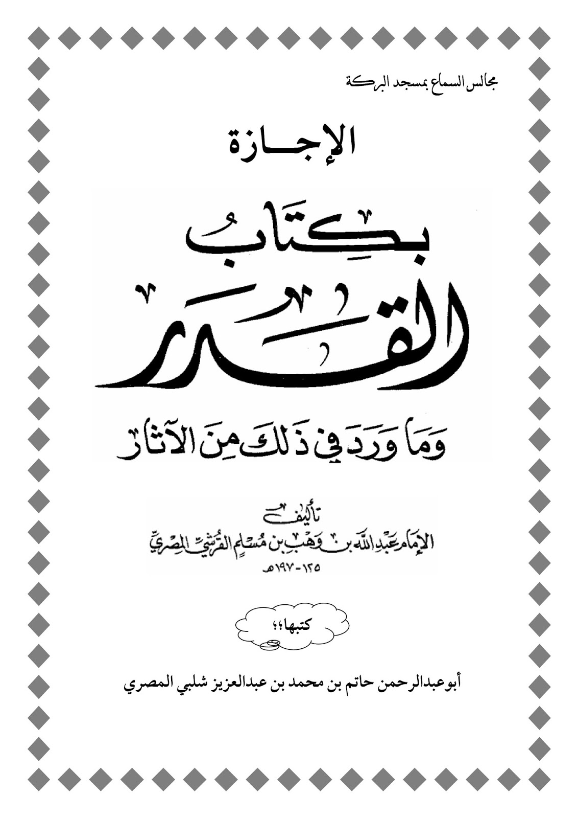 الإجازة بكتاب القدر وما ورد فى ذلك من الأثار لابن وهب ملتقى أهل الحديث