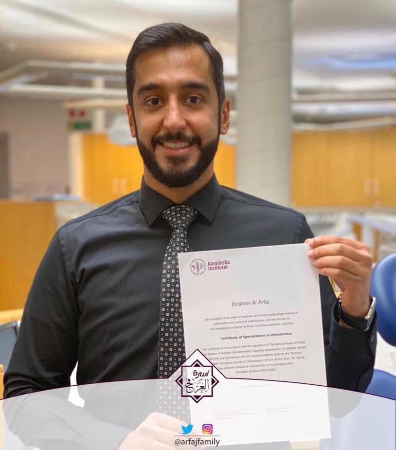 أسرة العرفج V Twitter تهنئ أسرة العرفج ابنها الدكتور إبراهيم بن خالد العرفج Ibrahimarfaj إنهائه مرحلة الزمالة الطبية من جامعة كارولينسكا بدولة السويد وحصوله على البورد السويدي في تخصص تقويم الأسنان Https T Co Daspzmrxtn