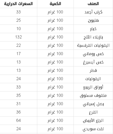 جدول السعرات الحرارية لجميع الأطعمة المشهورة وضحلي