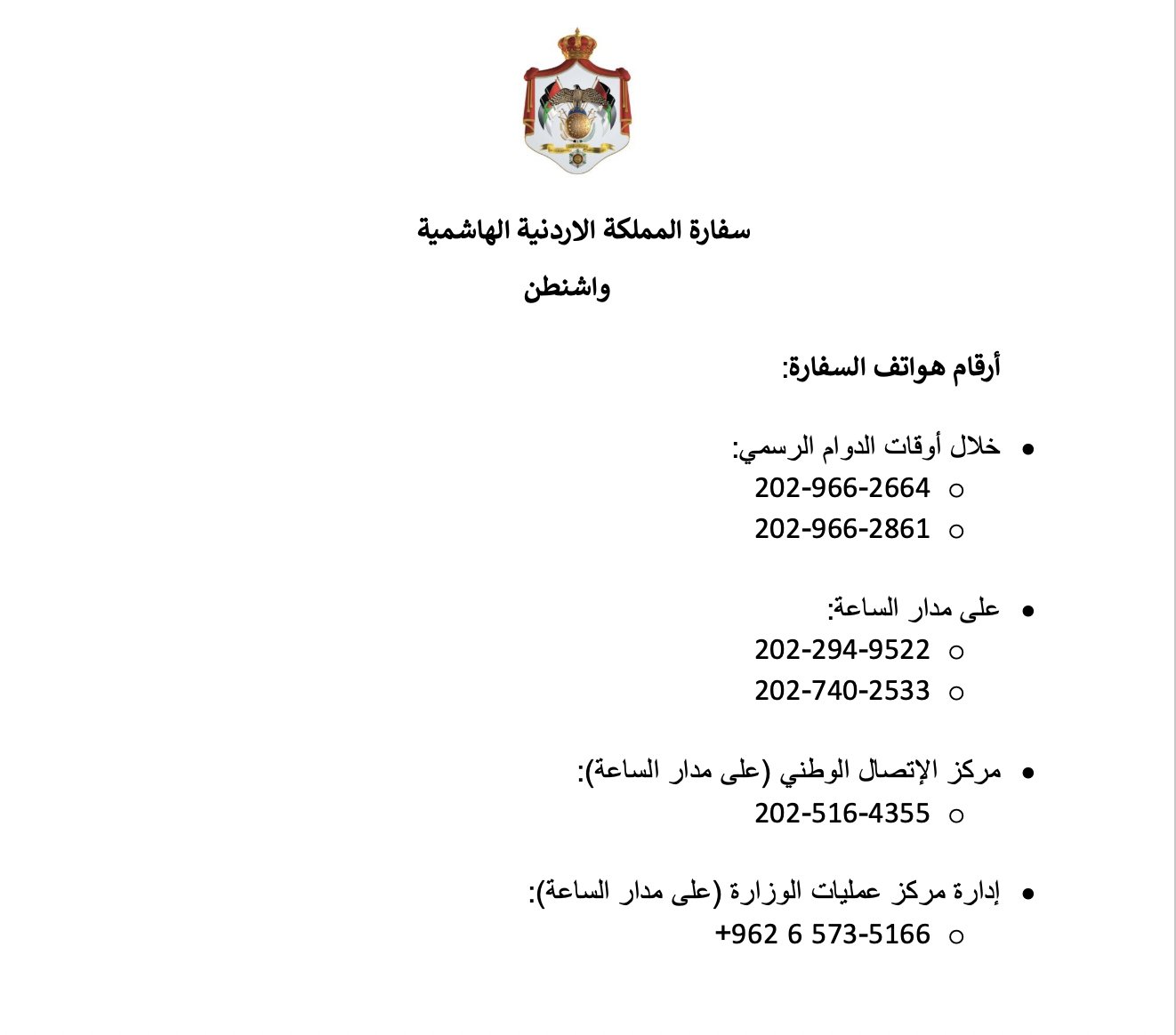 Embassy Of Jordan Us On Twitter تود السفارة التذكير بأرقام هواتف الاتصال في الحالات الطارئة وذلك كما هو مبين في الصورة المرفقة كما تود التأكيد على ضرورة الإلتزام بالتعليمات الصادرة عن الجهات
