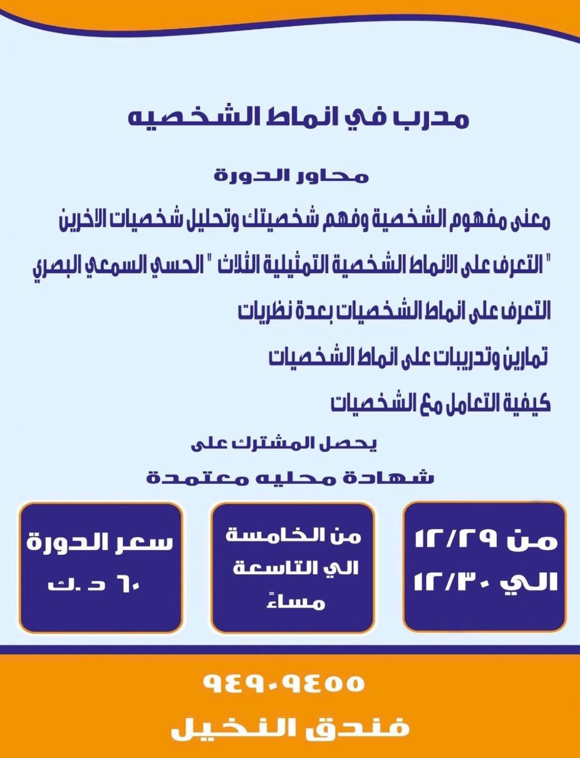 طلال الديحاني على تويتر دورة مدرب في انماط الشخصيه لفهم الشخصيات وكيفية التعامل معها R Wasy1984