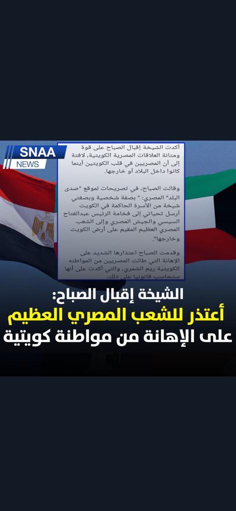 ص قر ع بدالل طيف الغ انم On Twitter بيان اعتذار من الشيخة إقبال الصباح للإخو ه الجالية المصري ة الكويت ومصر واحد ولكل من ظن أن القانون ي طبق على الوافد فقط تفضل اقرأ آخر سطر
